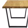 Masivní ocelové nohy ve tvaru obráceného „U“ o rozměrech 6x3 cm zajišťují perfektní stabilitu a nosnost. Jejich černý matný povrch kontrastuje s přírodní kresbou dubu a dodává stolu moderní průmyslový vzhled. Společně s dřevěnou deskou tvoří harmonickou kombinaci elegance a funkčnosti.