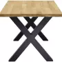 Masivní kovové nohy ve tvaru „X“ v černé matné barvě nejsou jen estetickým prvkem, ale přináší i neotřesitelnou stabilitu, kterou oceníte při každodenním používání. Ať už pořádáte rodinné večeře, pracovní schůzky, nebo jen relaxujete u šálku kávy, tento stůl vás nikdy nezklame.