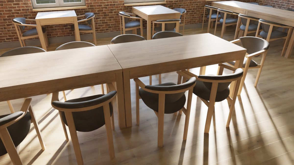 Největší přednost tohoto stolu je jeho univerzálnost. Hodí se do moderní kuchyně stejně jako do klasické jídelny. Do rodinného domu i do restaurace.